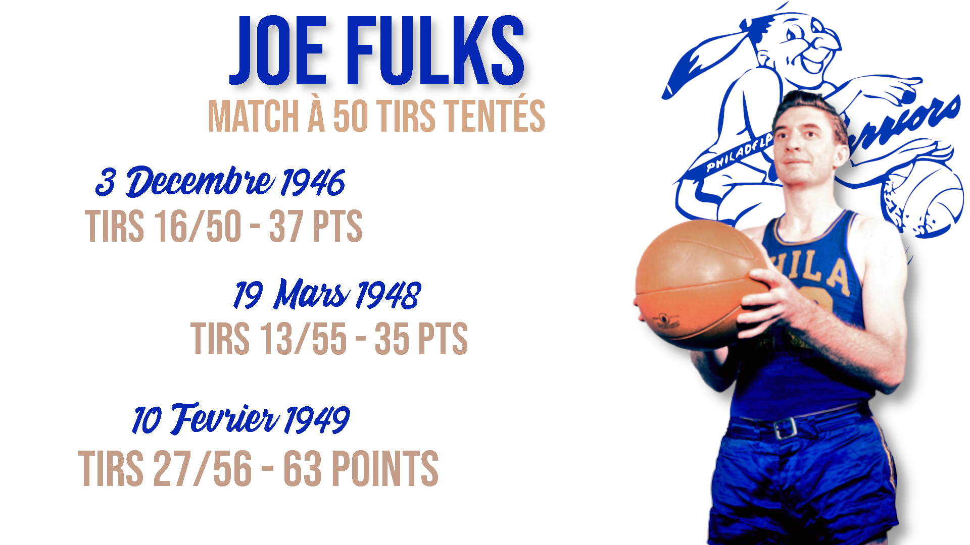 Ces deux joueurs sont « apparemment » les deux Power forwards de leur équipe en ce jour du premier novembre 1946, mais aucun d’entre eux n’a marqué la ligue. La star de l’époque est le scoreur boulimique Joe Fulks, l’ailier fort des Philadelphia Warriors. Il est un des cinq joueurs à avoir tenté plus de cinquante tirs dans un match, avec Elgin Baylor, Kobe Bryant, Rick Barry et Wilt Chamberlain. Ce dernier le fait à quatorze reprises, les autres ne le font qu’une fois, et Joe Fulks le fait à trois occasions pour le meilleur comme pour le pire.